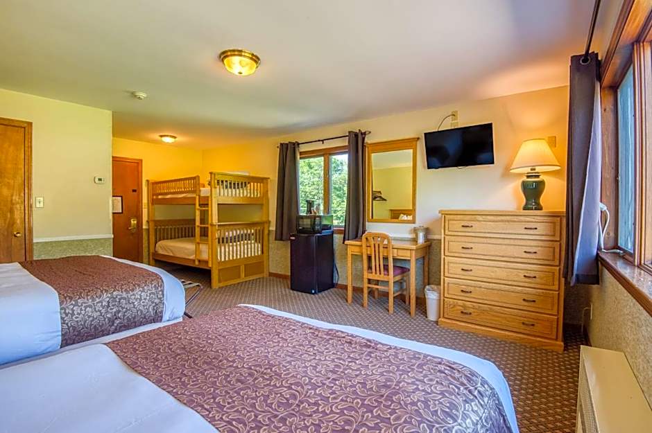 Providing free toiletries, this family room includes a private bathroom with a bath and a shower. The family room features mountain views. The unit offers 3 beds.